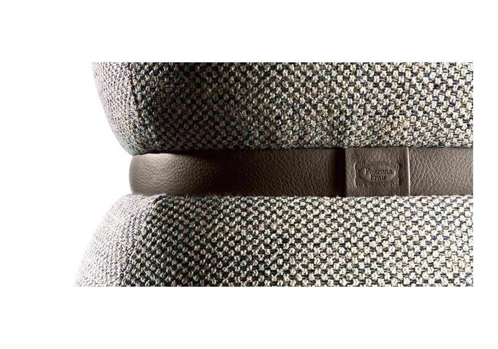 Poltrona Frau e li unisce a suggestioni sartoriali provenienti dalla moda. Classiche impunture e morbide pieghe valorizzano l’essenzialità sinuosa del design. Accostamenti materici fra tessuto e pelle danno eff etti di grande