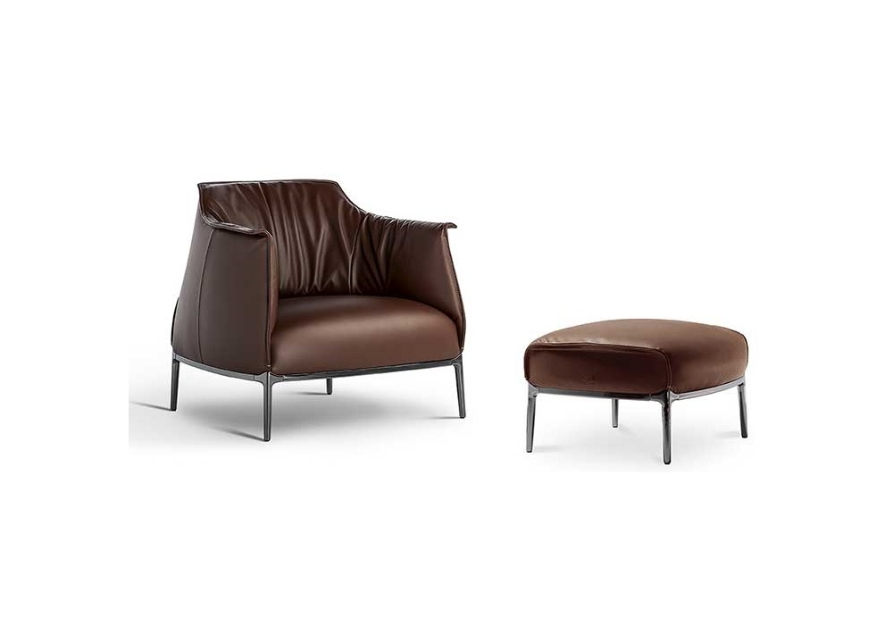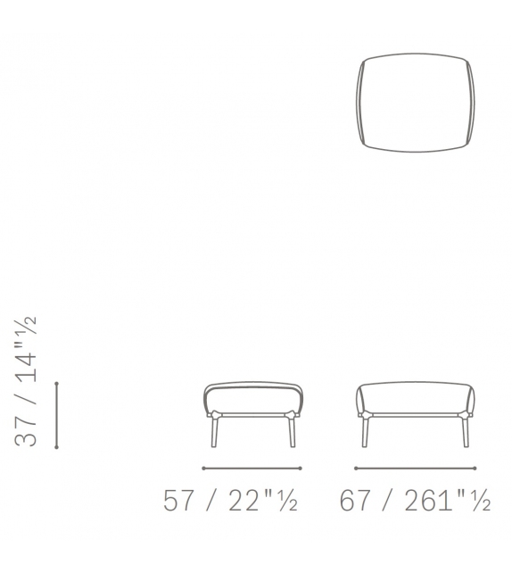 Archibald, disegnato da Jean-Marie Massaud per Poltrona Frau, è un pouf con quattro piedi in fusione di alluminio collegati a una struttura in tubolare di acciaio, disponibile nelle finiture: canna di fucile, brunito e titanio. Può essere rivestito in pelle o tessuto. Struttura in multistrato di betulla e imbottitura in poliuretano espanso sagomato e ovatta di poliestere.