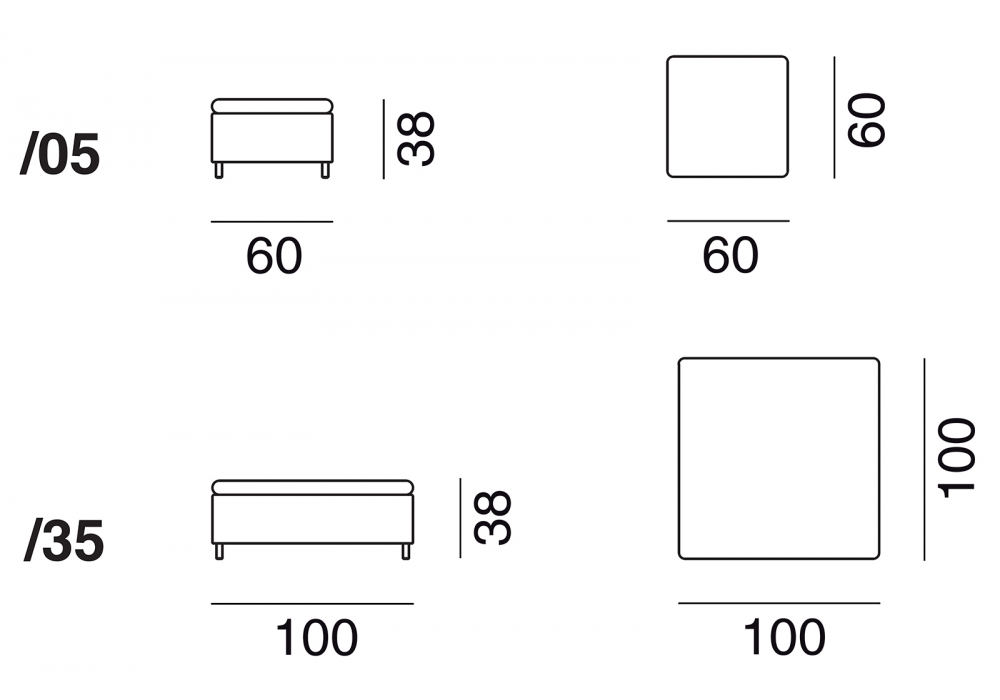 | Dimensioni | 60 x 60 x H 38 cm ( ds-7/05); 100 x 100 x H 38 cm ( ds-7/35). |