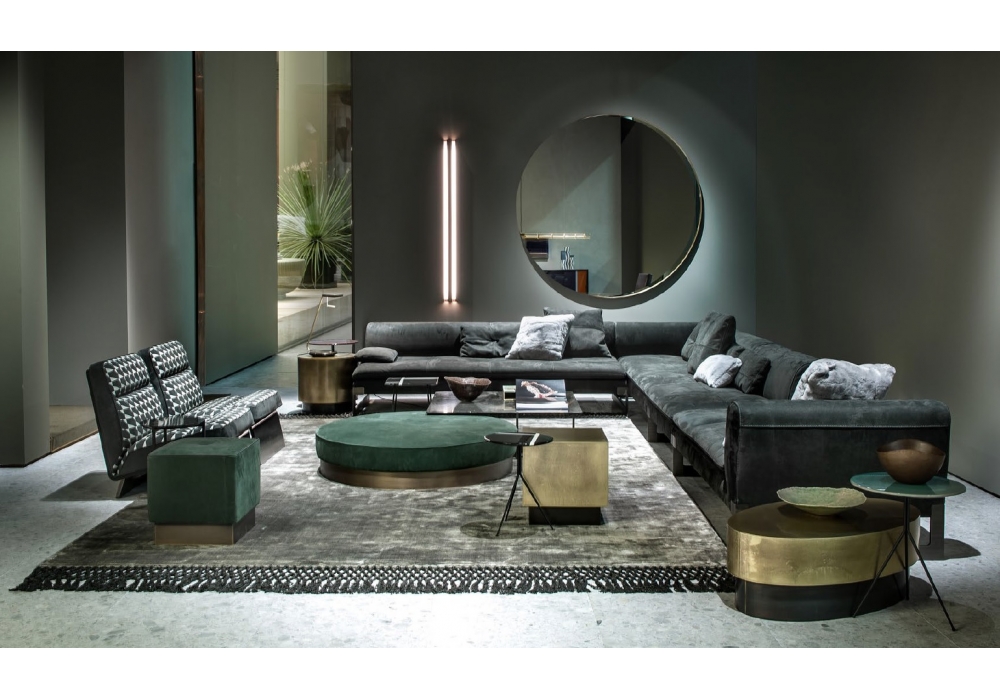 Anais firmato da Draga & Aurel per Baxter è un pouf disponibile in tre dimensioni. Rivestimento in pelle morbida. Basamento rivestito in ottone satinato, in metallo brunito spazzolato a mano o in metallo nichelato satinato, con vernice opaca. Struttura seduta e schienale in multistrato di faggio. Imbottitura in poliuretano espanso a densità differenziata con rivestimento in fibra acrilica. Profilo decorativo e bottone nella medesima tonalità di pelle.