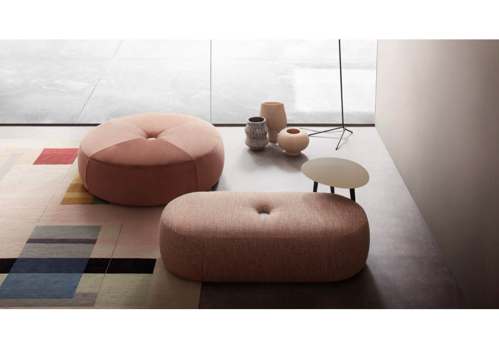 Aley firmato da Gabriele & Oscar Buratti per Lema è un pouf imbottito con rivestimento in tessuto o in pelle. Disponibile in diverse finiture e dimensioni.