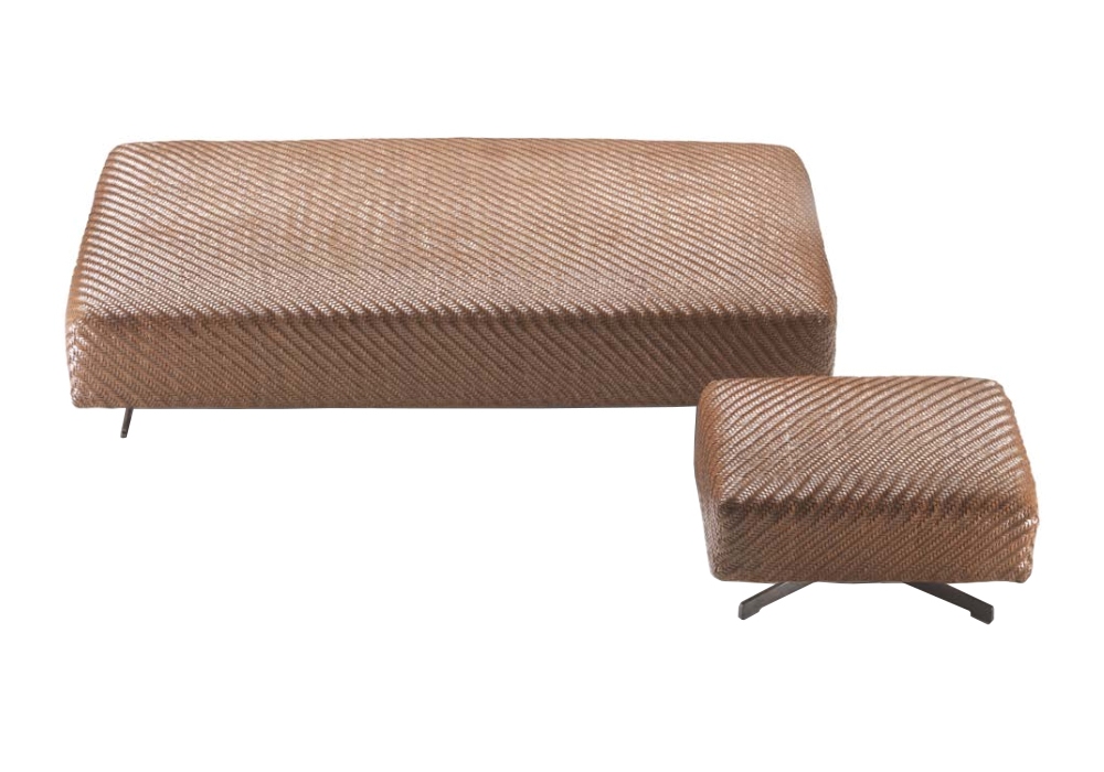 Filicudi firmato da Design Center per Flexform è un pouf realizzato con struttura in legno imbottita in poliuretano espanso e rivestita in pelle intrecciata e piedini in metallo. Il pouf è disponibile in due misure.