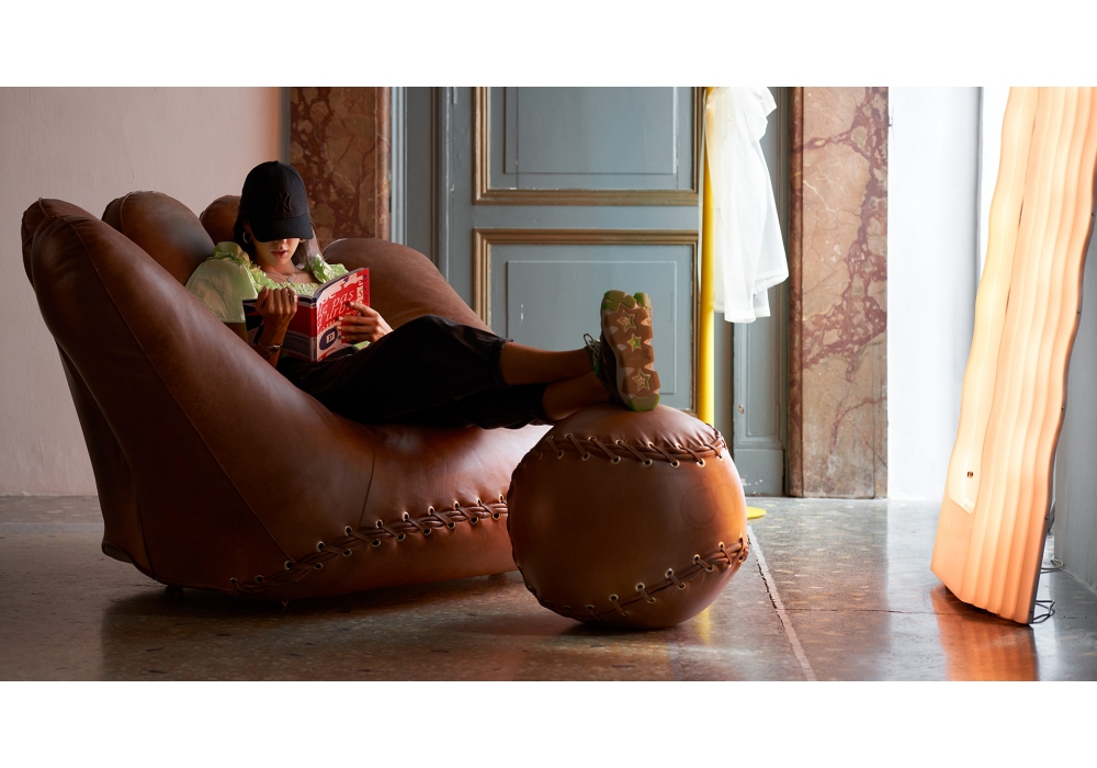 Joe Ball firmato da De Pas, D'Urbino, Lomazzi per Poltronova è un pouf / poggiapiedi realizzato con imbottitura in poliuretano preformato e rivestimento in pelle. Ha un peso all'interno che lo rende stabile anche come seduta. Disponibile in diverse finiture.