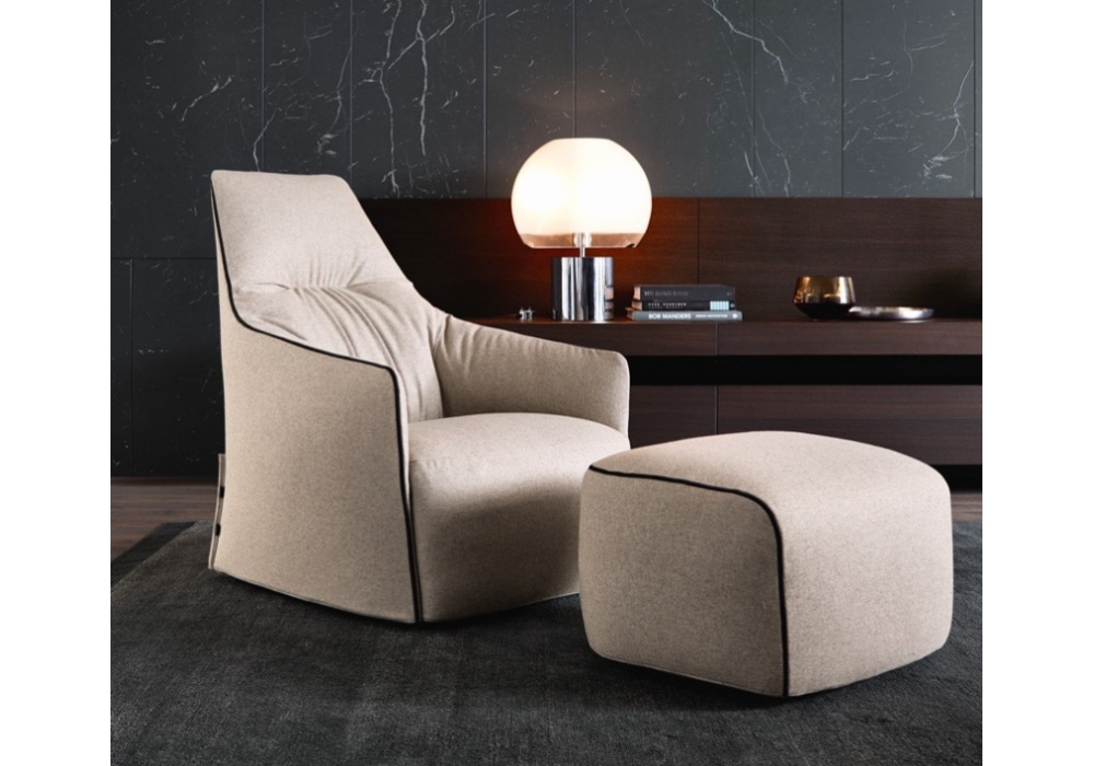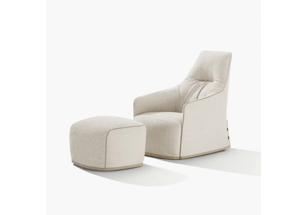 Santa Monica Lounge firmato da Jean Marie Massaud per Poliform è un pouf realizzato con struttura in poliuretano flessibile stampato in doppia densità e rivestimento in tessuto o in pelle. Cucitura normale doppia o a cordoncino.