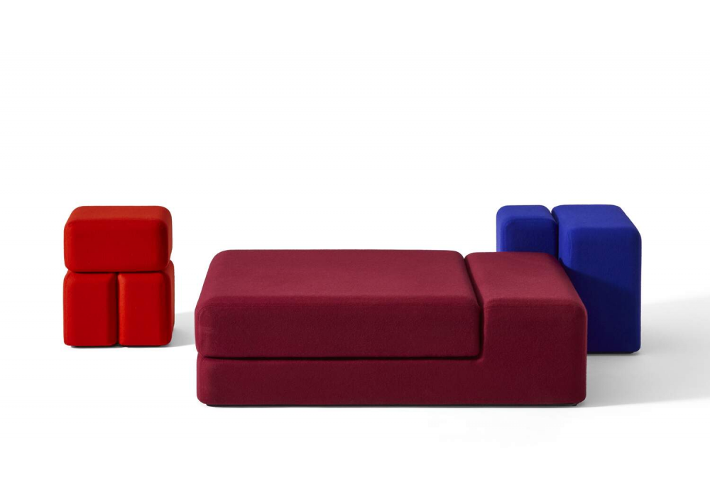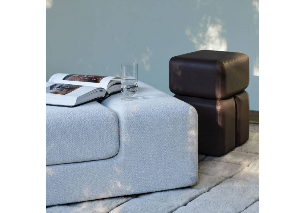 Soft Corners firmato da Linde Freya Tangelder per Cassina è un pouf in diverse dimensioni realizzato con rivestimento in tessuto o in pelle.