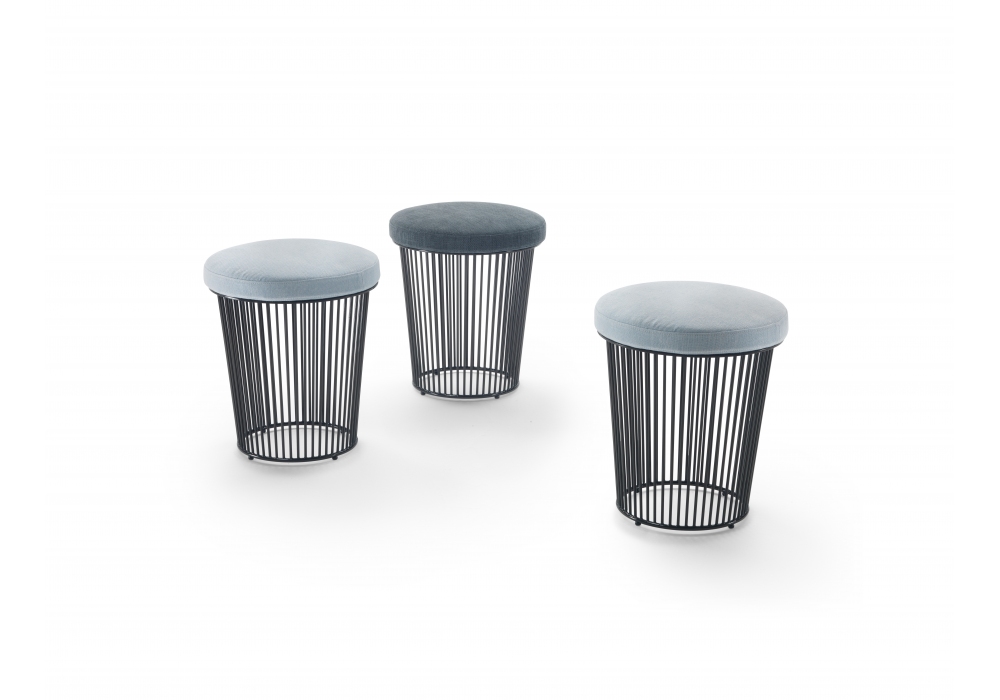 Berry firmato da Design Center per Flexform è un pouf con struttura in metallo e rivestimento in tessuto o pelle.