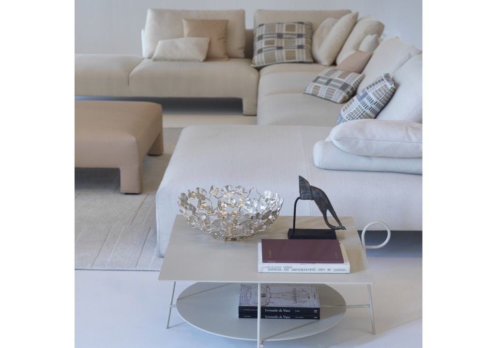 Mod firmato da Ludovica + Roberto Palomba per Driade è un pouf con struttura in acciaio dotata di cinghiatura elastica e imbottitura in schiume poliuretaniche a quote differenziate. Cuscini di schienale reversibili in piuma d'oca e fibra sintetica a comfort differenziato inclusi. Rivestimento sfoderabile in tessuto o fisso in pelle disponibile in differenti finiture. Uso solo interno.