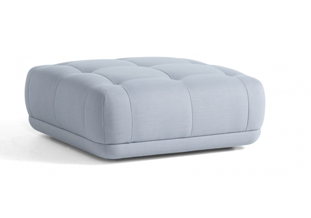 Quilton 05 firmato da Doshi Levien per Hay è un pouf con rivestimento in tessuto o pelle e gambe in massello di faggio tinto nero. Disponibile anche nella versione con base a contrasto nero.