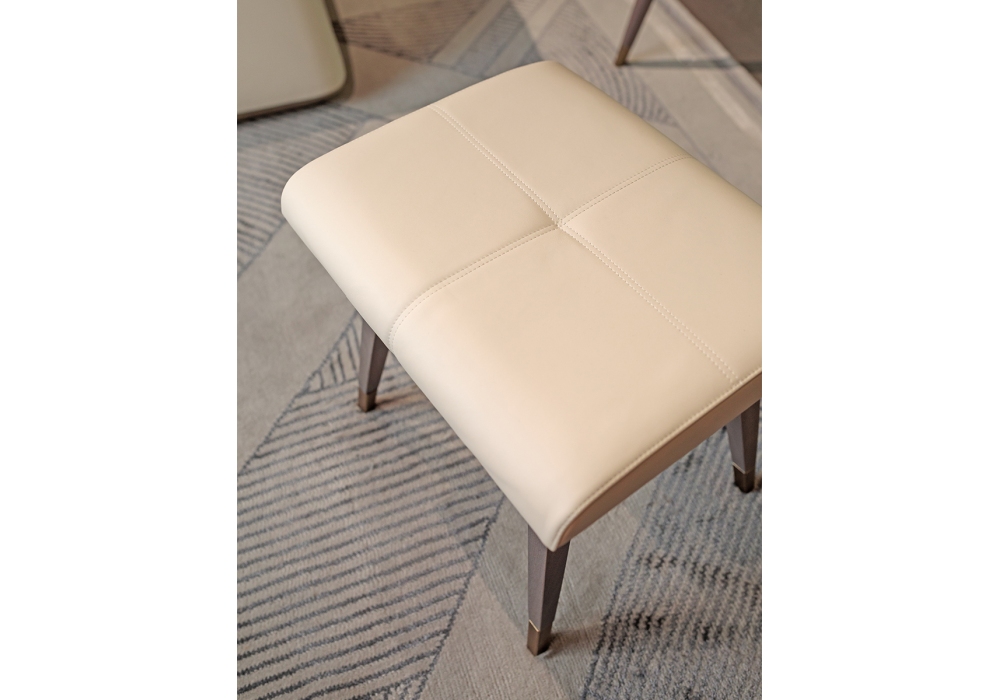 Melting Light firmato da Frank Jiang per Turri è un pouf con struttura in multistrato e legno massello e rivestimento in tessuto o pelle non sfoderabile. Gambe in massello di noce con parti metalliche in finitura oro o bronzo spazzolato.