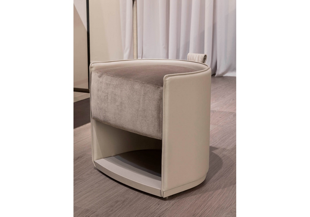 Vine firmato da Frank Jiang per Turri è un pouf con struttura in multistrato e legno massello imbottito con poliuretano espanso. Rivestimento struttura e cuscini in differenti pelli o tessuti. Parti metalliche in oro o bronzo spazzolato.