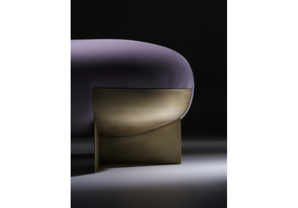 Ori firmato da Stormo Studio per DeCastelli è un pouf caratterizzato da una base in metallo nella finitura ottone, rivestimento in tessuto disponibile in diversi colori.
