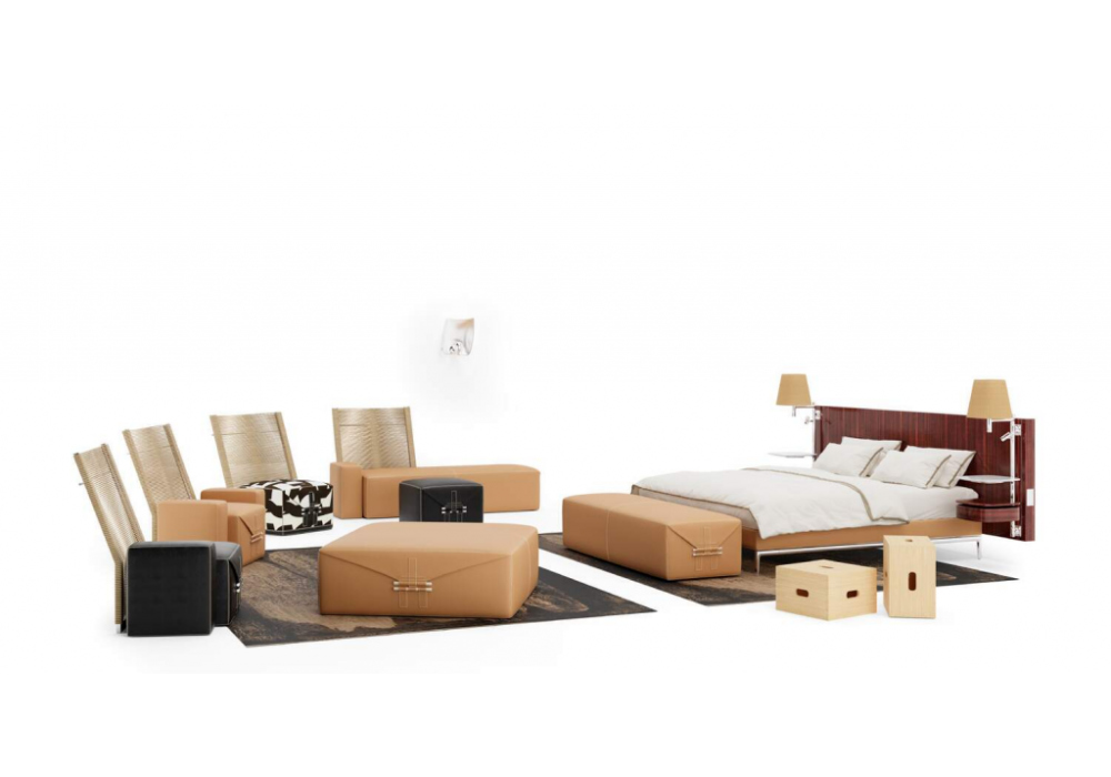 Somewhere El-S firmato da Philippe Starck per Cassina è un pouf realizzato con rivestimento in tessuto Bogolan e profilo in pelle oppure in pelle Voyage. Dettagli in metallo cromato o verniciato bronzo lucido. Disponibile in diverse finiture e dimensioni.