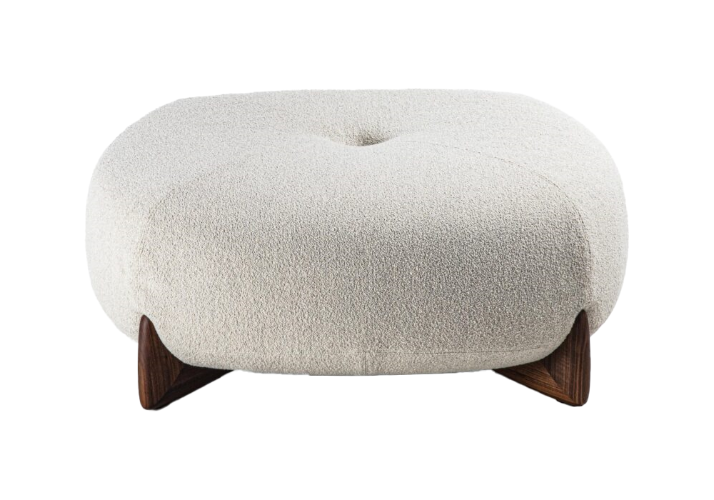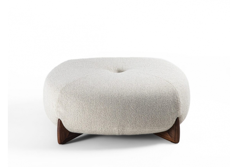 Softbay firmato da Giuseppe Viganò per Porada è un pouf con struttura in massello di noce canaletta o frassino e rivestimento sfoderabile in differenti tessuti. É presente un bottone centrale dove convergono le cuciture.