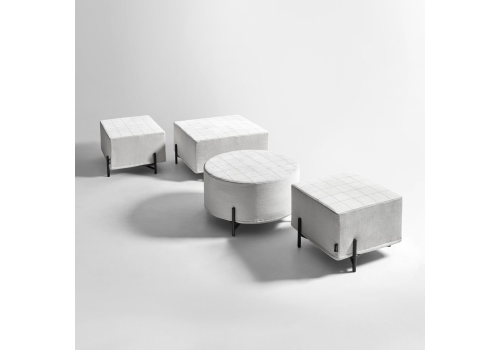 Paesaggi Sospesi firmato da Gumdesign per Antonio Lupi è un pouf realizzato con struttura in legno multistrato CARB di vari spessori e polistirolo. Imbottitura in poliuretano sagomato a densità differenziata, rivestito in fibra poliestere. Base in metallo verniciato e rivestimento in tessuto.
