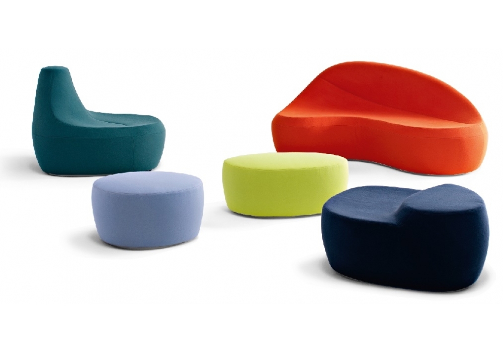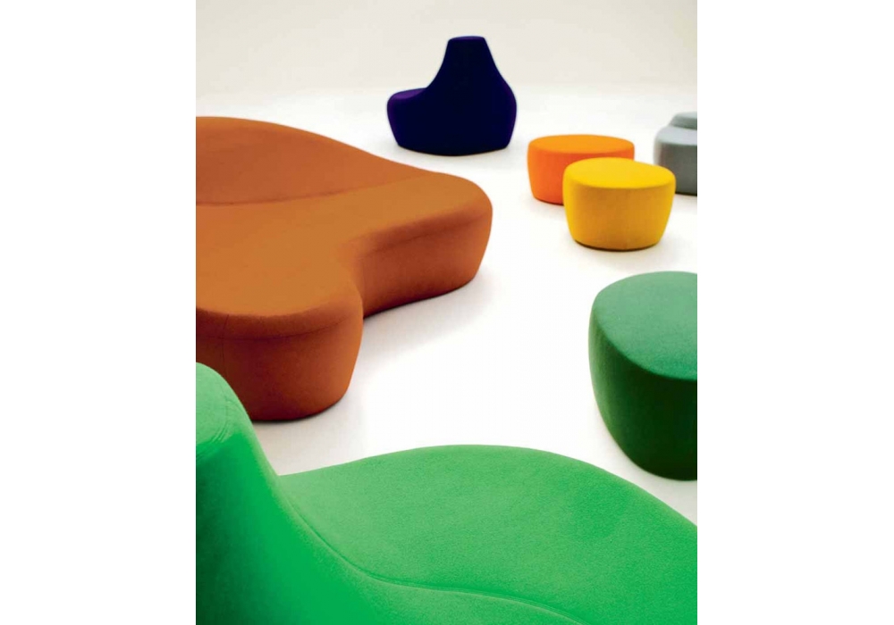 Saruyama Island firmato da Toshiyuki Kita per Moroso è un pouf piccolo con struttura in poliuretano schiumato a freddo con struttura interna in acciaio e base in legno. Rivestimento in differenti tessuti.