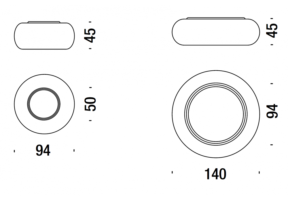 | Dimensioni | Ø 94 x H 45 cm; Ø 140 x H 45 cm. |