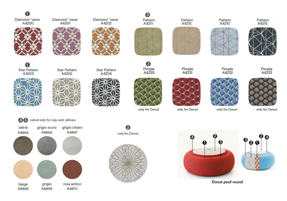 Donut firmato da Edward van Vliet per Moroso è un pouf realizzato in poliuretano espanso a densità differenziate e fibra di poliestere con struttura interna in legno. Piedini in polipropilene.