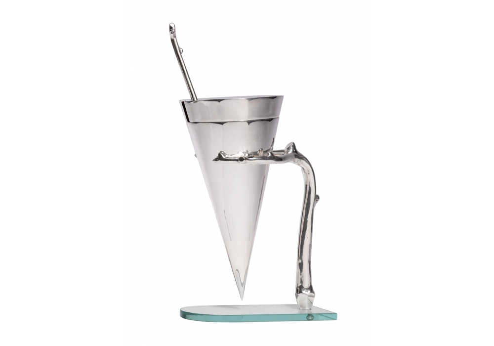 Labrador firmata da Andrea Branzi per Memphis Milano è una salsiera in ottone argentato o in argento 925.