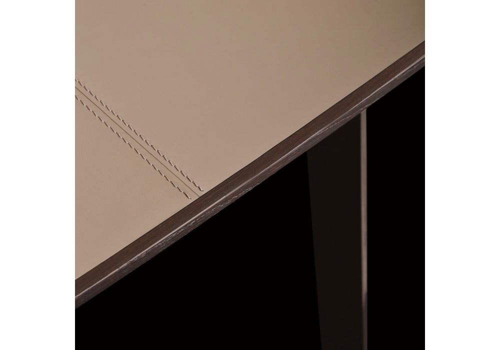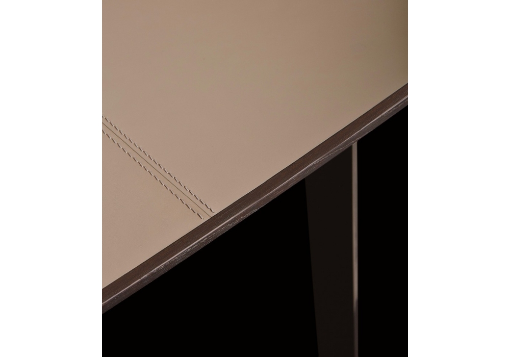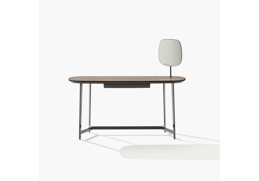 Mathieu firmato per Emmanuel Gallina per Poliform è uno scrittoio realizzato con struttura in metallo verniciato, piano con cornice in legno massello e insertoin cuoio. Cassetto sottopiano e specchio opzionali.