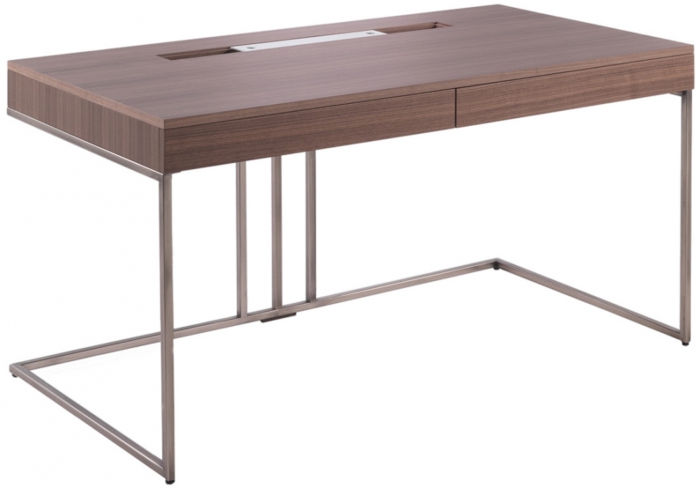 Kepler firmato da G. Azzarello per Porada è uno scrittoio realizzato in legno di noce canaletta disponibile in diverse finiture con due cassetti, vano portaoggetti, foro passacavi e struttura in metallo.