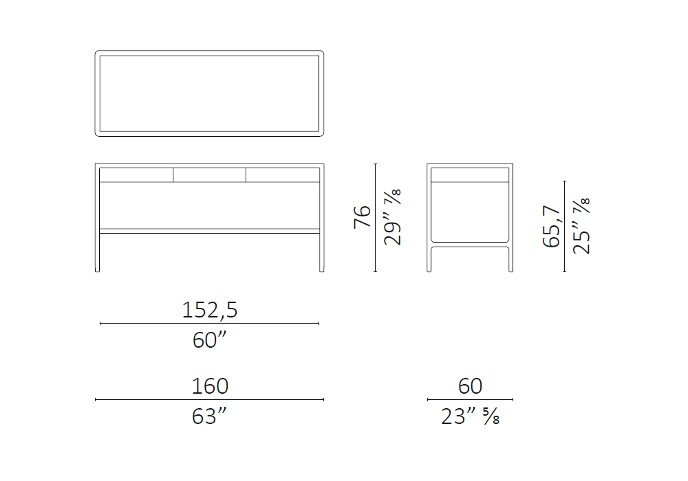 | Dimensioni | • 132 x 52 x H 76 cm; • 160 x 60 x H 76 cm |