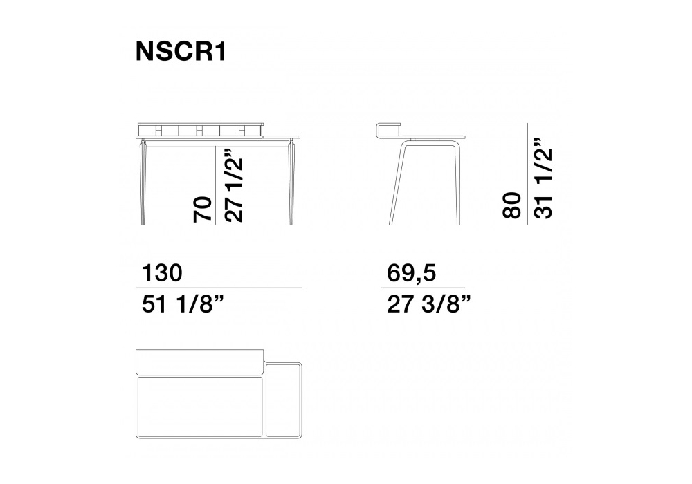 Note firmato da Matteo Nunziati per Molteni&C è uno scrittoio realizzato con struttura e piano in noce canaletto e inserti in cuoio rigenerato color testa di moro.