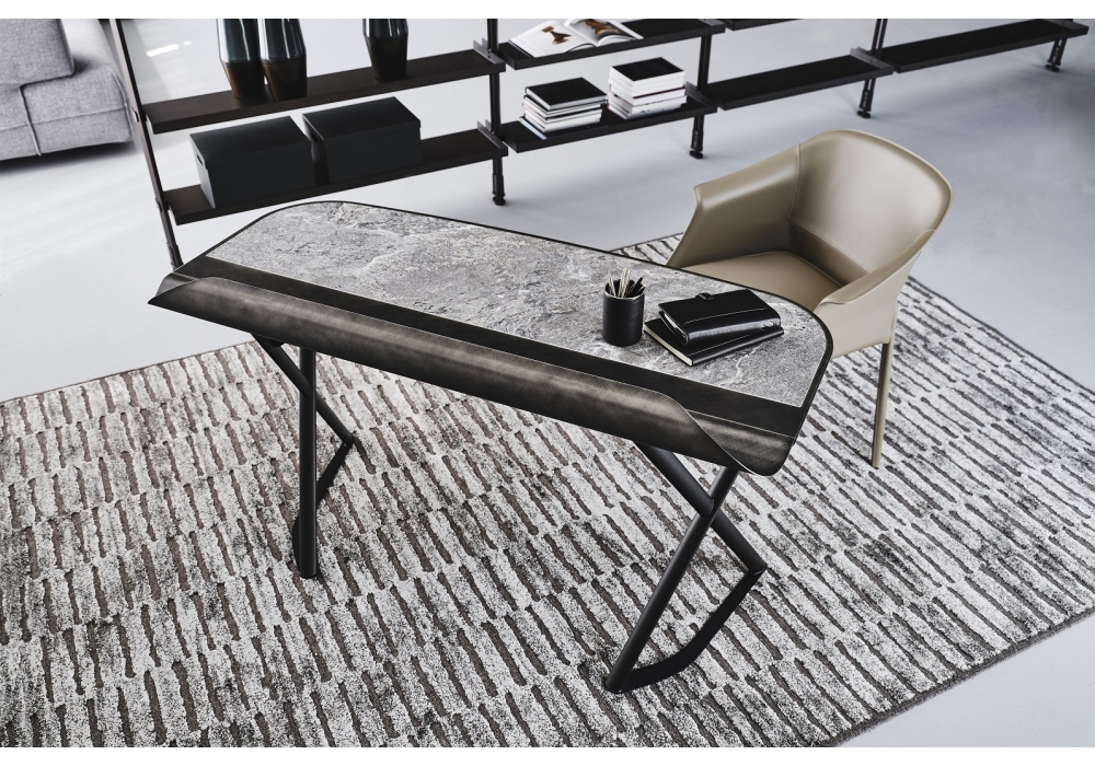 Cocoon Keramik firmato da Paolo Cattelan per Cattelan Italia è uno scrittoio realizzato con base in acciaio verniciato. Piano in ceramica Marmi in diversi colori con profilo inferiore arrotondato e verniciato Brushed Bronze o Brushed Grey e gola portaoggetti in metallo verniciato Brushed Bronze o Brushed Grey.