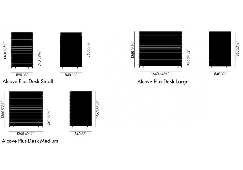| Dimensioni | Small_ 89 x 84 x H 136 cm (Top 74.5 x 70 cm); Medium_ 126.5 x 84 x H 136 cm (Top 112 x 70 cm); Large_ 164 x 84 x H 136 cm (Top 149.5 x 70 cm); |