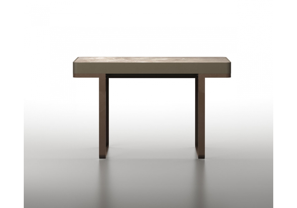 Imperio firmata da Marco Piva per Casamania & Horm è una scrivania dal piano indipendente che può essere arricchito da diverse finiture pregiate, come il marmo o il vetro retroverniciato. Un cassetto centrale divide la sua simmetria laterale sorretta da lunghe gambe in metallo.