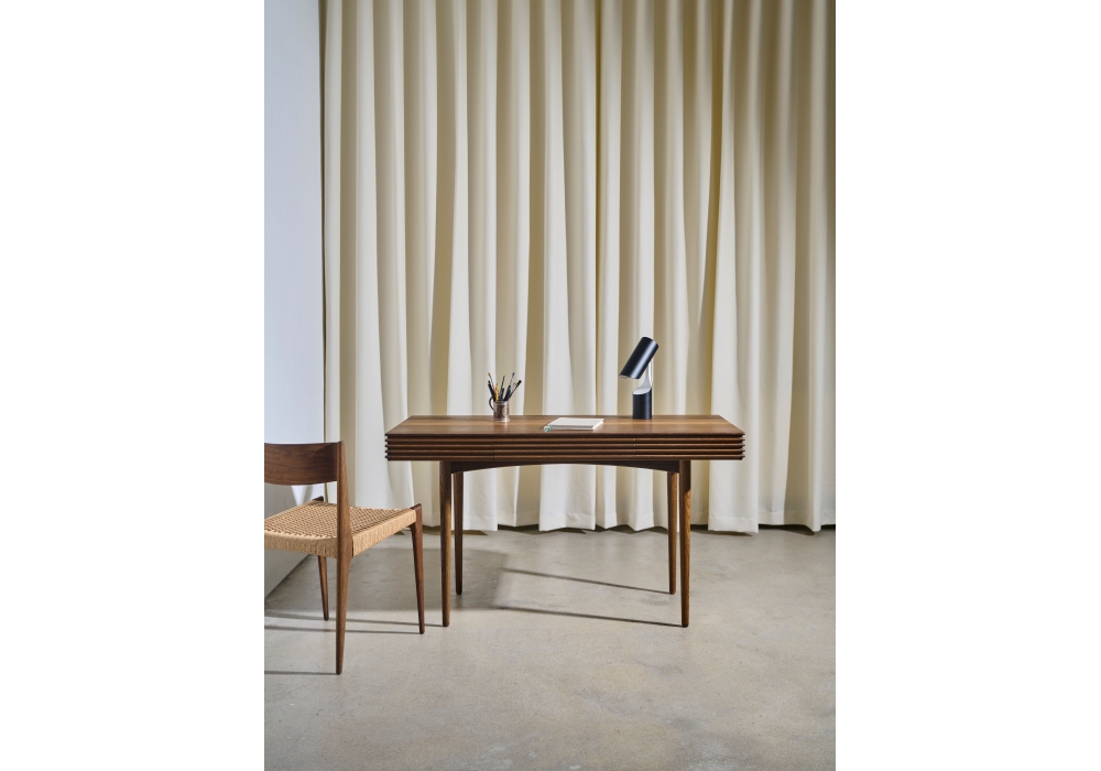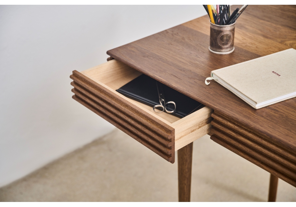 Groove firmato da Christian Troels per Dk3 è una scrivania realizzata in legno massiccio, disponibile in diverse finiture. Passaggio cavi opzionale in ottone o acciaio inossidabile.