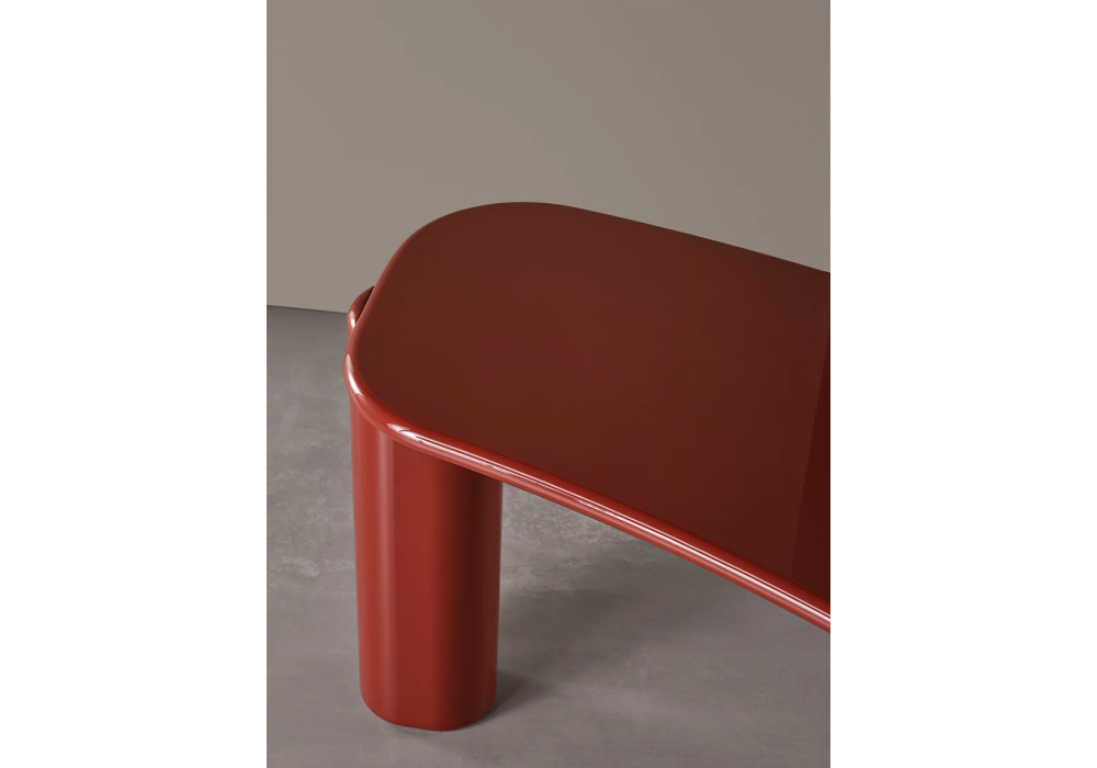 Henry firmato da Andrea Parisio per Meridiani è uno scrittoio a tre gambe realizzato in differenti finiture lucide o opache. Su richiesta è possibile aggiungere un stotomano in cuoio.