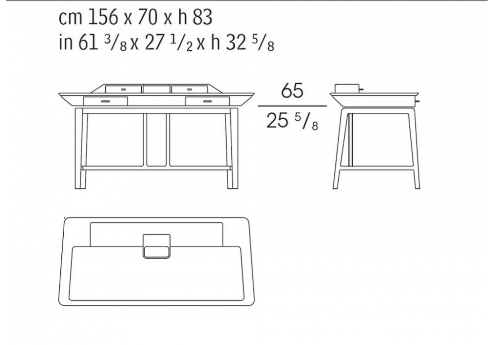 Studium firmato da Umberto Asnago per Giorgetti è uno scrittoio con la struttura in massiccio e impiallacciatura di noce canaletto. Il piano, l'alzata superiore e i frontali dei cassetti sono rivestiti in cuoio, in diverse tonalità di colore. Lo scrittoio è dotato di due cassetti nel piano e altri due nell'alzata.