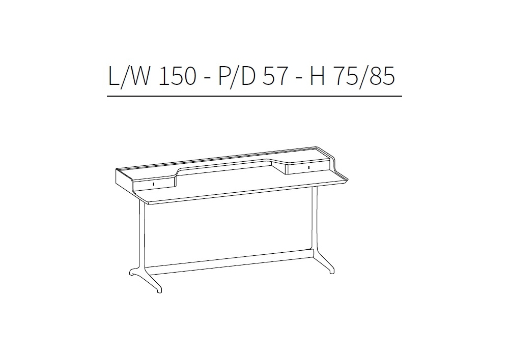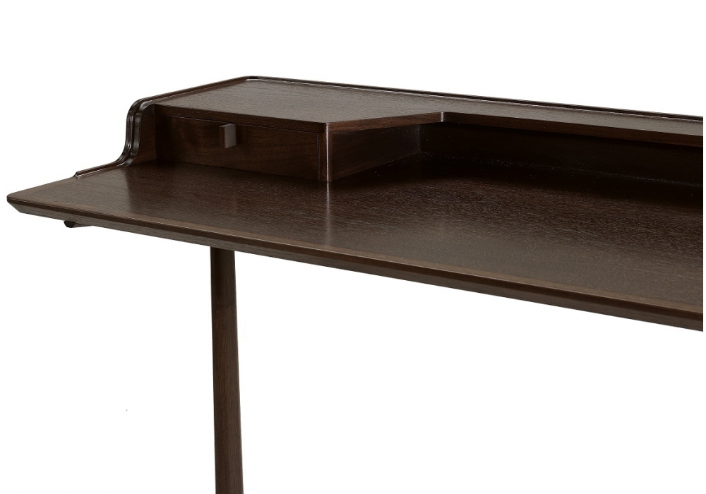 Don Giovanni firmato da Giuseppe Casarosa per Ceccotti Collezioni è uno scrittoio realizzato completamente in massello di noce Americano, piano in multistrati di pioppo impiallacciato noce americano, alzata con due cassetti, piedini in ottone.