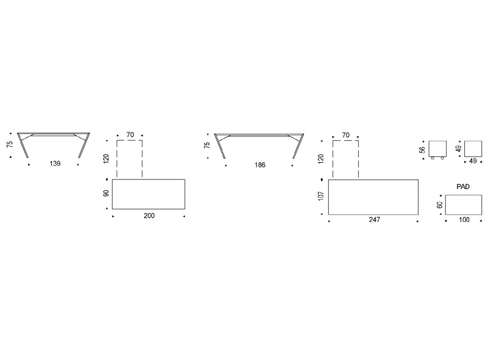 Vega firmata da Giorgio Cattelan per Cattelan Italia è una scrivania con dattilo, realizzata in acciaio inossidabile o rivestita in legno di noce Canaletto o rovere bruciato. Interno scrivania verniciato graphite opaco. Cassettiera con ruote verniciata argento o graphite. Rivestimento cassetti e pad in cuoio disponibile in diverse finiture. Eventuali piccole irregolarità di riflessione nella versione in acciaio sono dovute alla lavorazione manuale. Disponibile in due dimensioni.