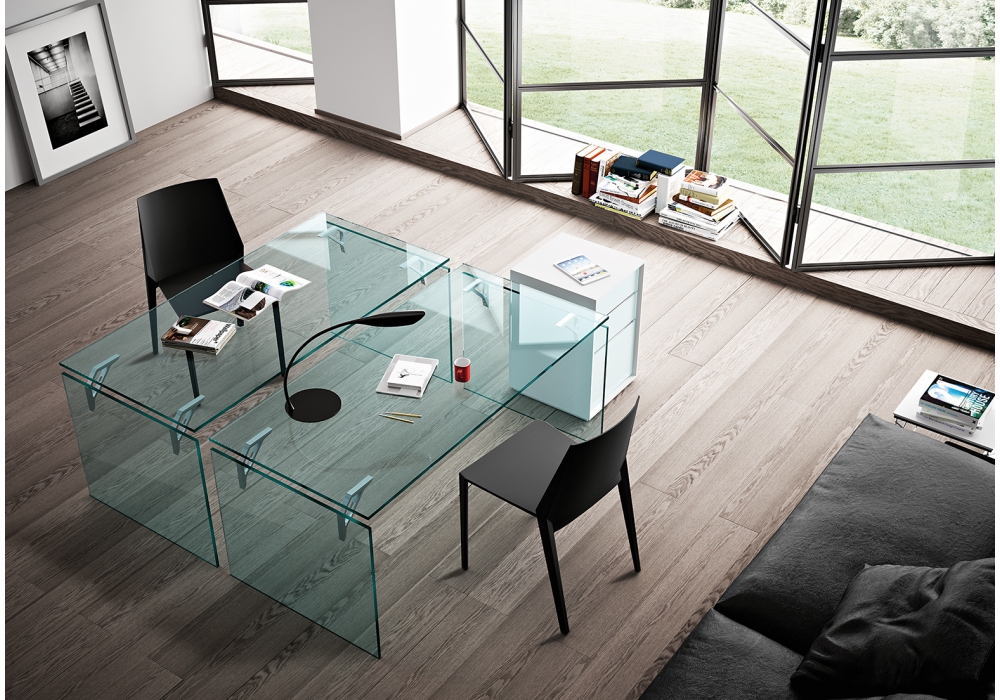 Bright firmata da CRS Fiam per Fiam è una scrivania realizzata in vetro temperato smontabile, con supporti di montaggio in alluminio ed acciaio. Disponibile in diverse dimensioni.