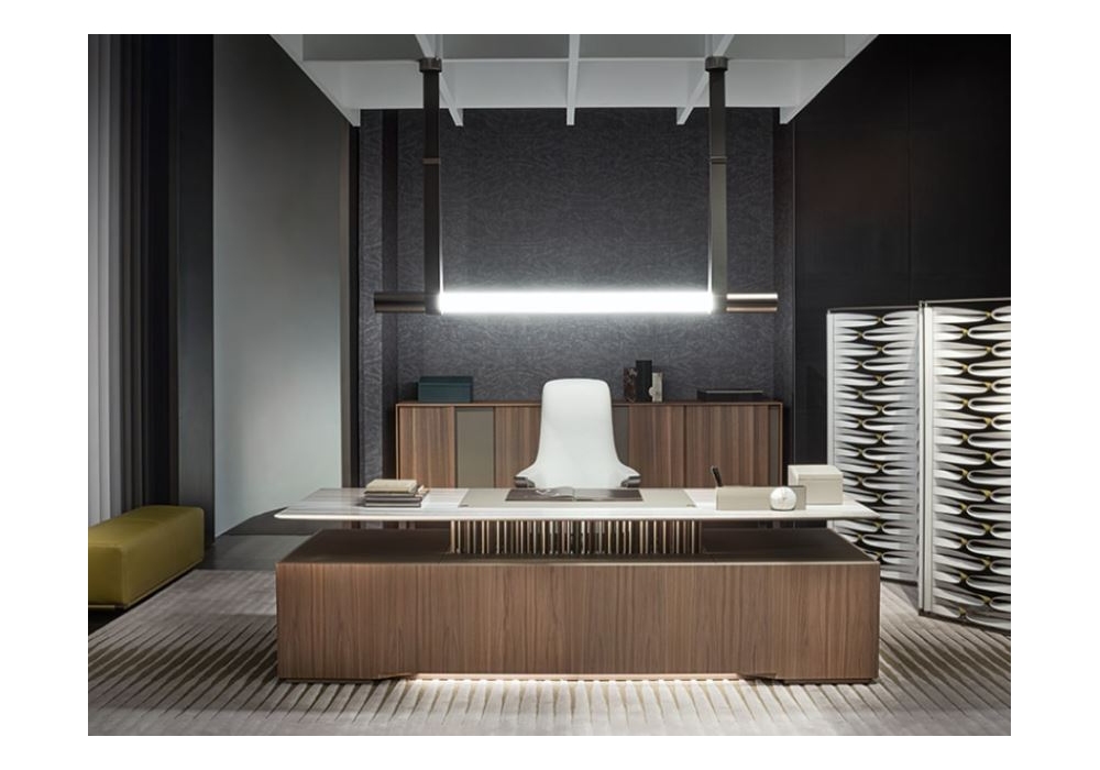 G-Code firmata da Dante O. Benini e Luca Gonzo per Giorgetti è una scrivania direzionale con struttura in noce canaletto, in diverse finiture. Il piano è disponibile in marmo o canaletto, in accompagnamento alla finitura scelta per la struttura è sempre presente un inserto in pelle. Il piano è sorretto da 158 cilindri metallici, in diverse dimensioni e finiture. La scrivania è dotata di sistemi di illuminazione ed elettrificazione e, a scelta, di Secure Lock per i cassetti (sistema di chiusura automatica gestito attraverso app).
