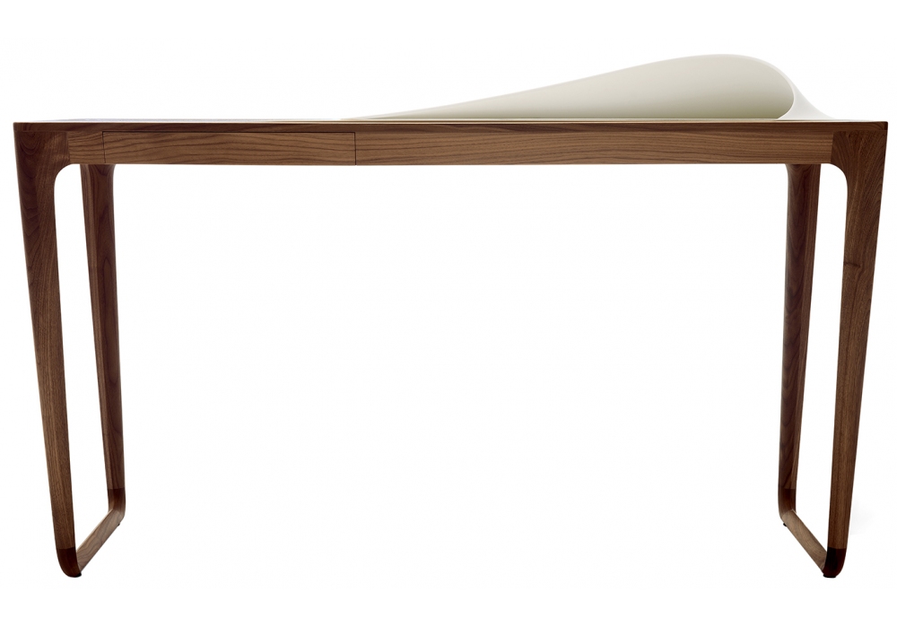 Sunday Morning di Ceccotti Collezioni è uno scrittoio realizzato in legno massello di noce americano e multistrato impiallacciato, 1 cassetto, piano in legno con tasca in corian bianco.