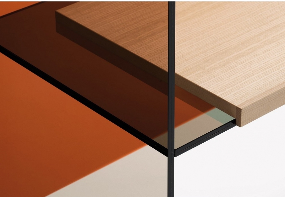 Diapositive firmato da Ronan & Erwan Bouroullec per Glas Italia è uno scrittoio alto in cristallo extralight stratificato e termosaldato, disponibile in diverse finiture. Gli elementi fissati alle estremità delle spalle portanti e il sovrapiano sono disponibili in frassino naturale o rovere moro. Lo scrittoio, a scelta, può essere dotato di un foro passacavi.