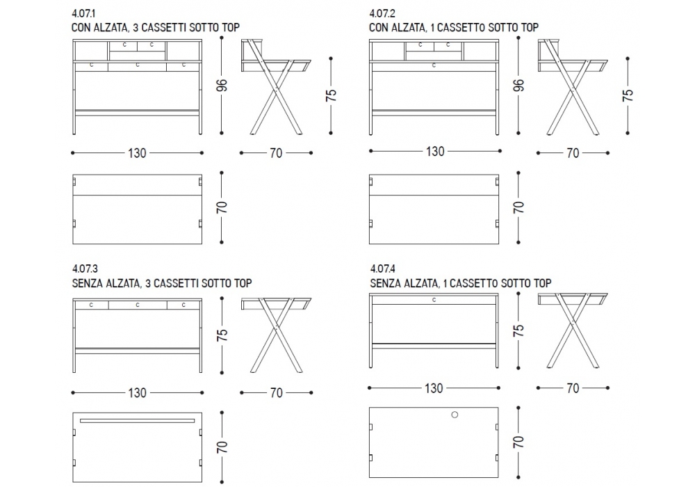 Navarra firmato da Riva 1920 è uno scrittoio realizzato completamente in legno massello, dotato di cassetti assemblati con incastri a coda di rondine. Disponibile con e senza alzatina, con 1 o 3 cassetti sotto top, si caratterizza per l’incastro ad “X” delle gambe.