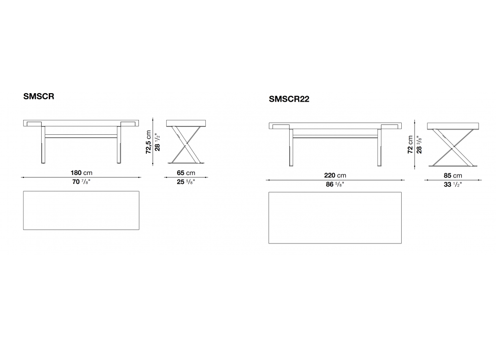| Dimensioni | 180 x 65 x H 72.5 cm; 220 x 85 x H 72 cm. |