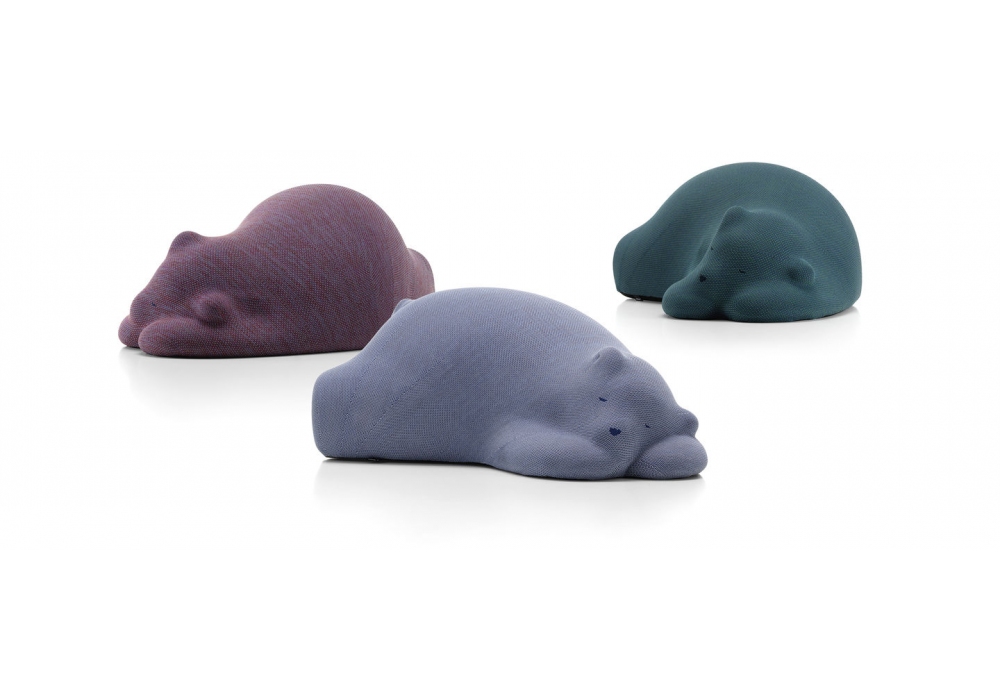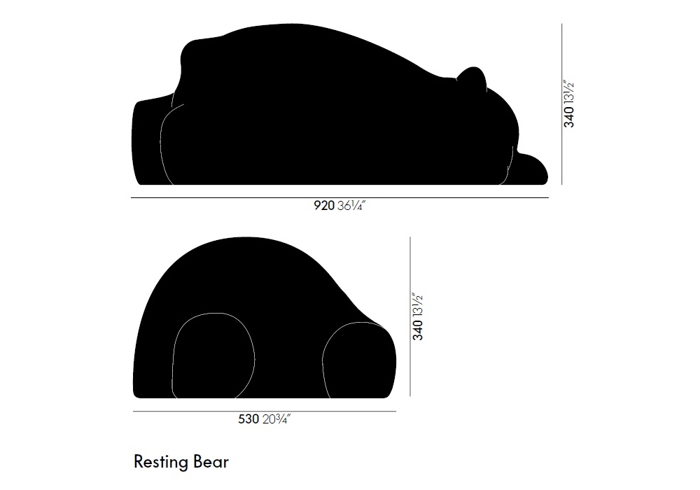 Resting Bear firmata da Front per Vitra è una scultura con imbottitura in schiuma stampata e pellet sintetici. Tessuto di rivestimento: maglia attillata. Base: asse di legno, rivestita con tessuto di velours. La sua presenza pacifica va oltre l'aspetto visivo, per comunicare un senso di contentezza e compagnia.