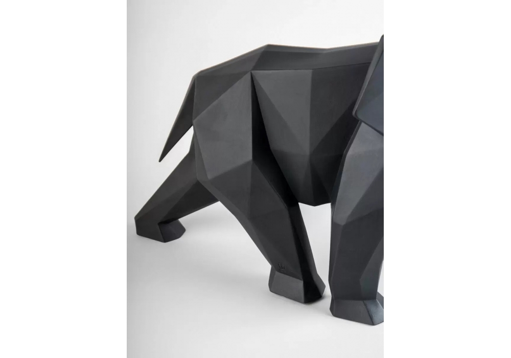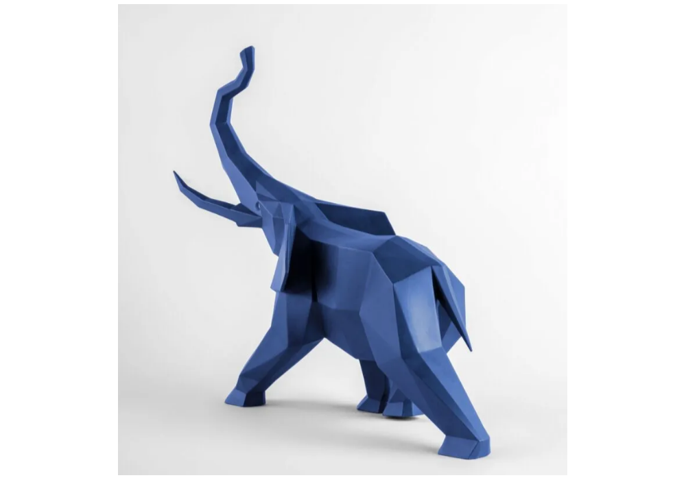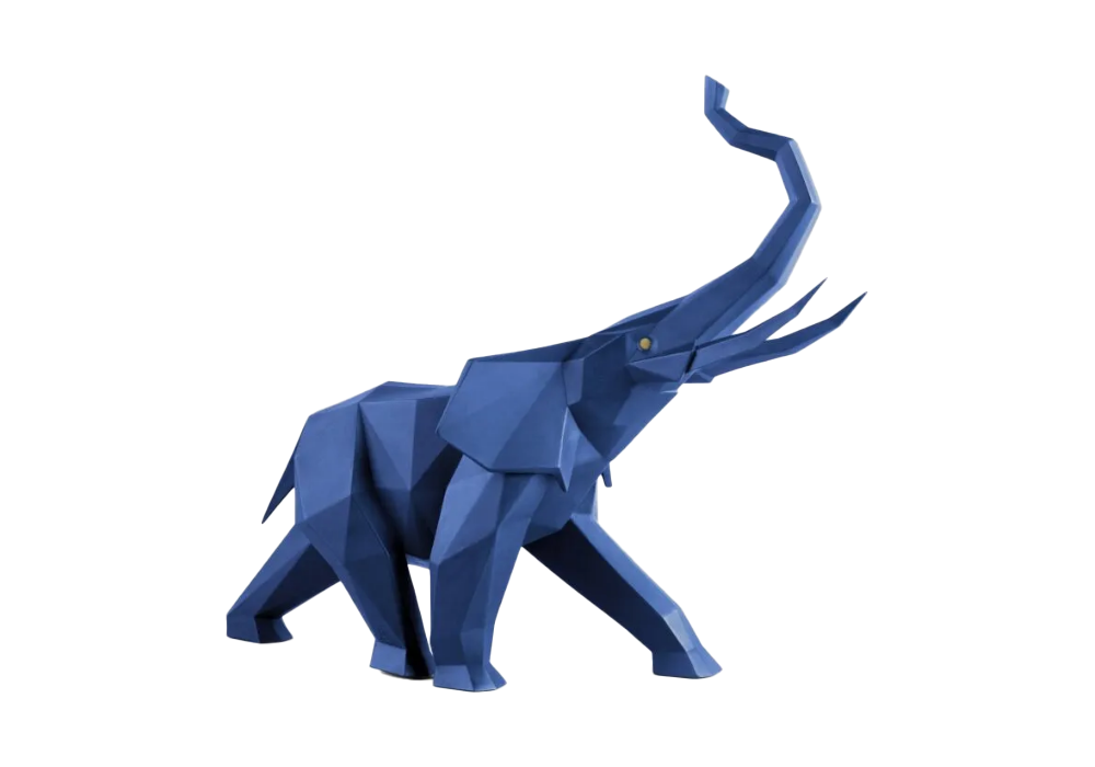 Elefante firmata da José Luis Santés per Lladró è una scultura in porcellana nella finitura nera opaca e blu opaca, interamente realizzata e verniciata a mano dagli artisti Lladró.