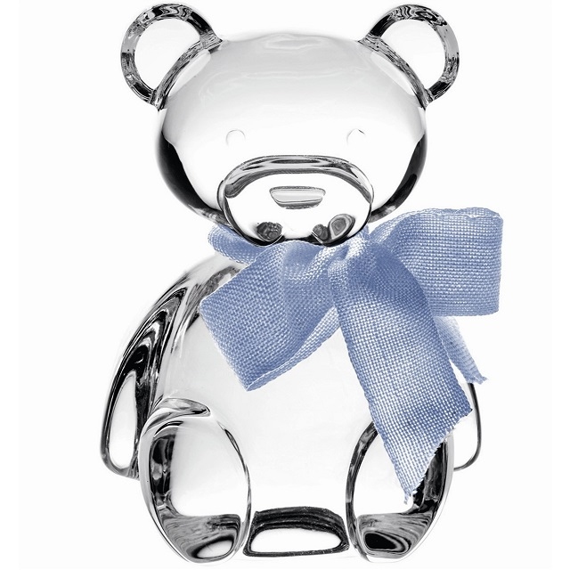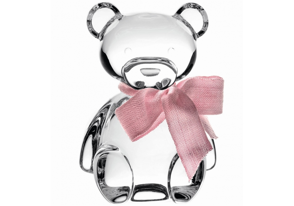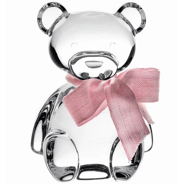 Teddy Bear firmata da Vista Alegre è una scultura realizzata in cristallo con nastro blu o rosa.