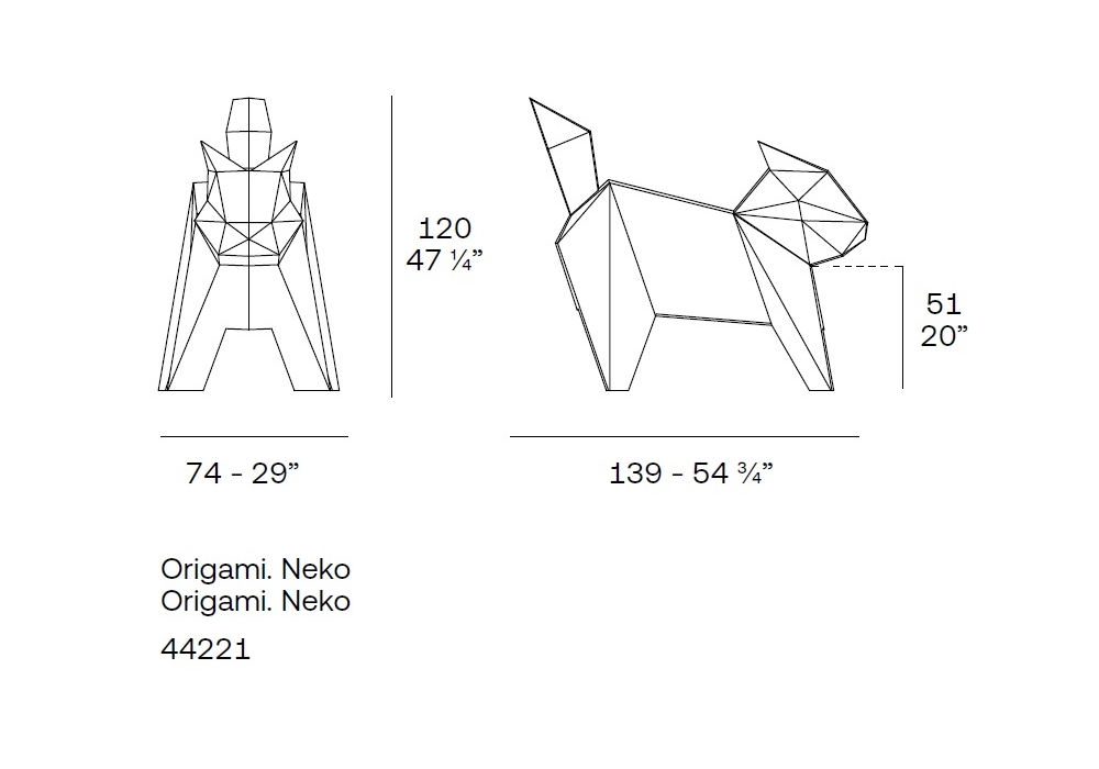 Origami Neko firmata da Studio Vondom è una scultura realizzata in polietilene con finitura opaca o laccata oppure con illuminazione interna a LED. Disponibile in diverse finiture.