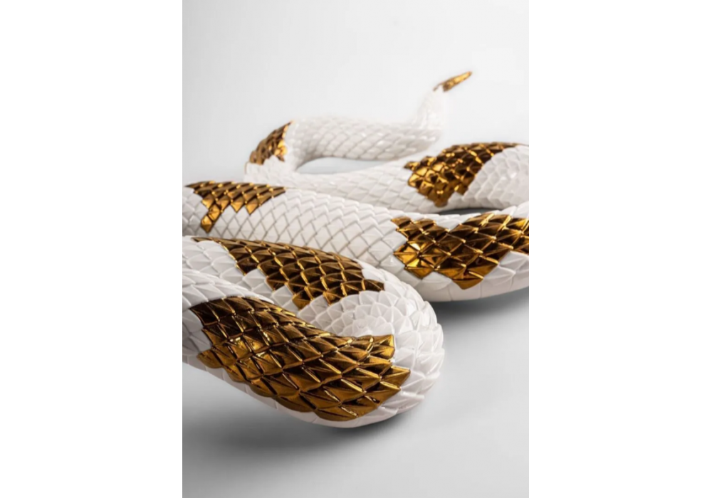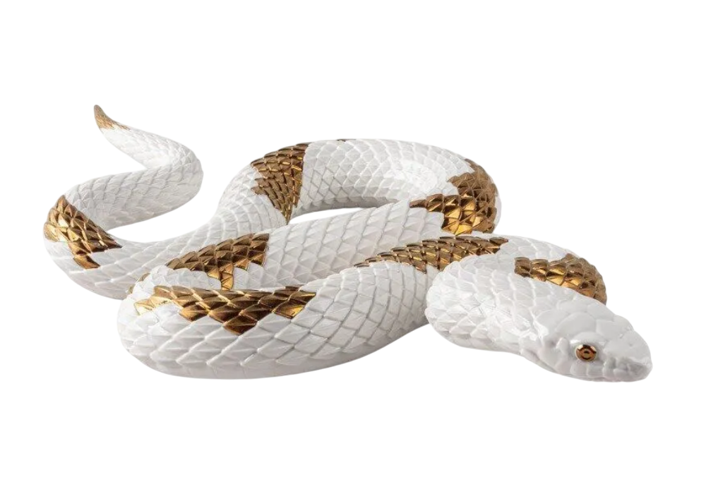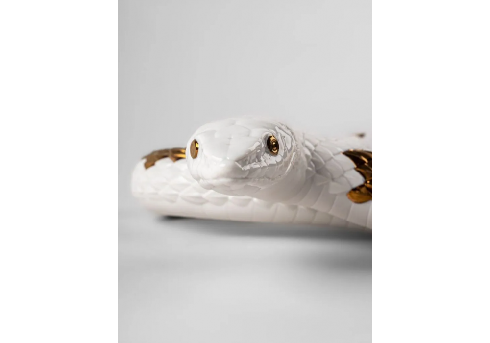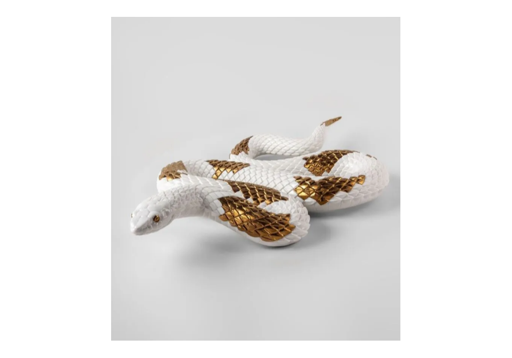 Snake firmata da Raul Rubio per Lladró è una scultura in porcellana bianca lucida con dettagli color oro.