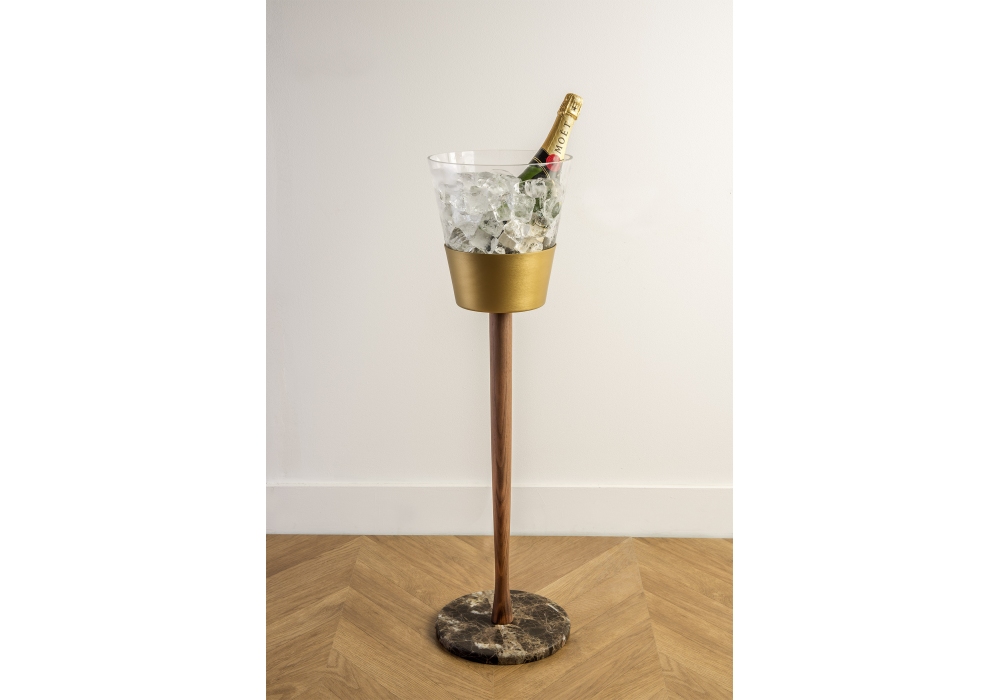 Champagnera firmato da Andrés Martinez per Nomon è un mobile bar con struttura in noce naturale o con finitura Black Ash, piano in marmo in diverse finiture.
