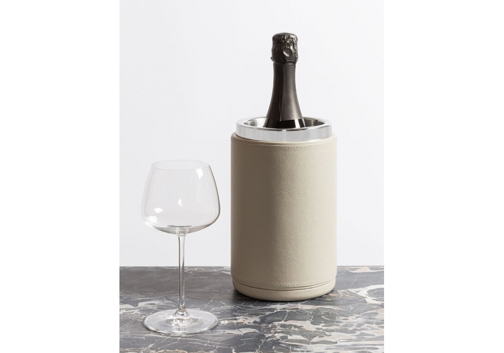 Tableware Collection firmato da Giobagnara per Poltrona Frau è un secchiello per ghiaccio di forma cilindrica in metallo rivestito in Pelle Frau®. Tableware Collection è disponibile in differenti finiture di pelle.