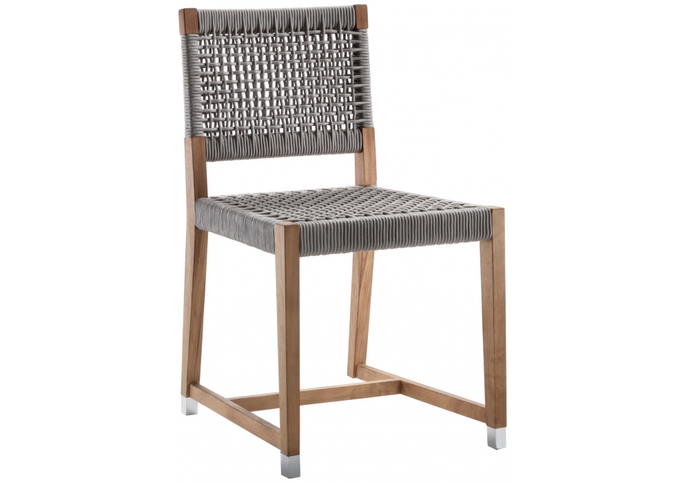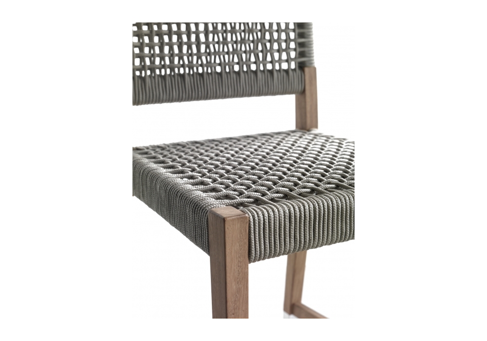 Dafne firmata da Flexform è una sedia della collezione Outdoor. Struttura in legno massello di Iroko nella finitura naturale, tinto grigio e laccato bianco. Schienale e seduta realizzati con intreccio in polipropilene.