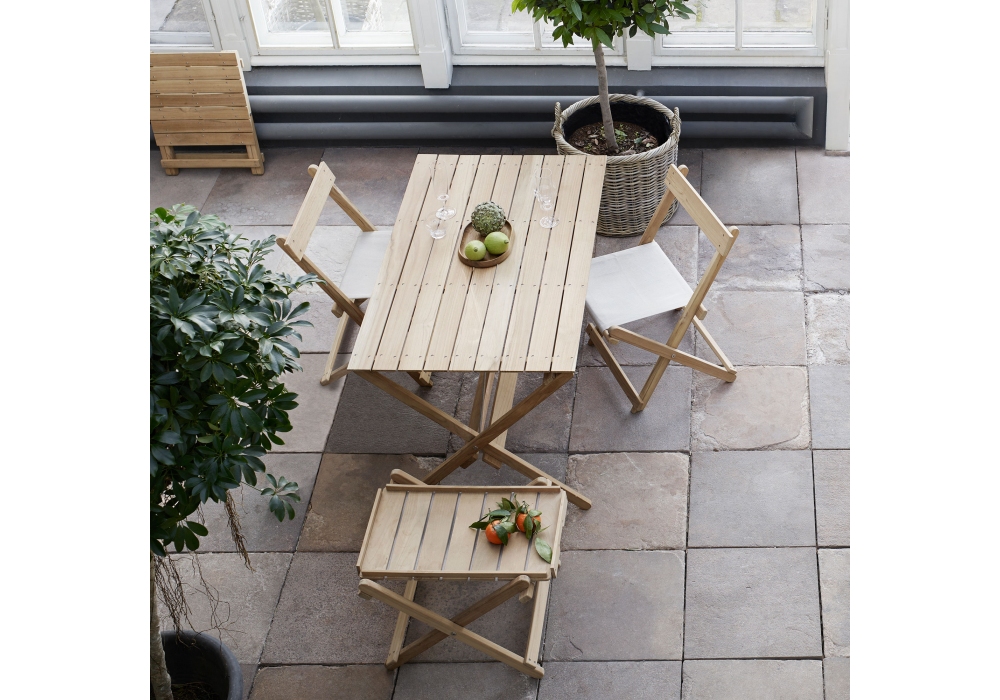 BM4570 firmato da Børge Mogensen per Carl Hansen & Søn è una sedia pieghevole da esterno con struttura in legno massello di Teak non tarttato e seduta in tessuto Heritage Papyrus 18006. Le giunzioni sono sempre in acciaio inossidabile