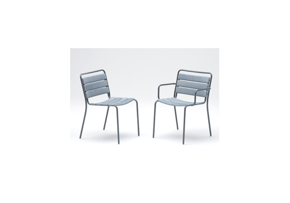 Elba firmata da David Rockwell per Paola Lenti è una sedia con struttura in acciaio inox AISI 316 verniciata opaca in color grafite o avorio. Le doghe sono in Diade rivestite in tessuto Maris in due differenti finiture.